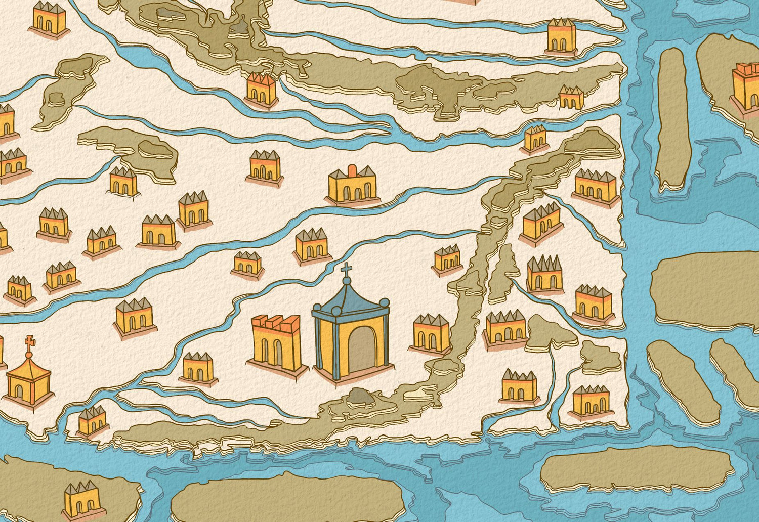 Seule entorse faite aux manuscrits originaux, j'ajoute à chaque carte une topographie sous-marine imaginaire, lui donnant ainsi beaucoup de profondeur.