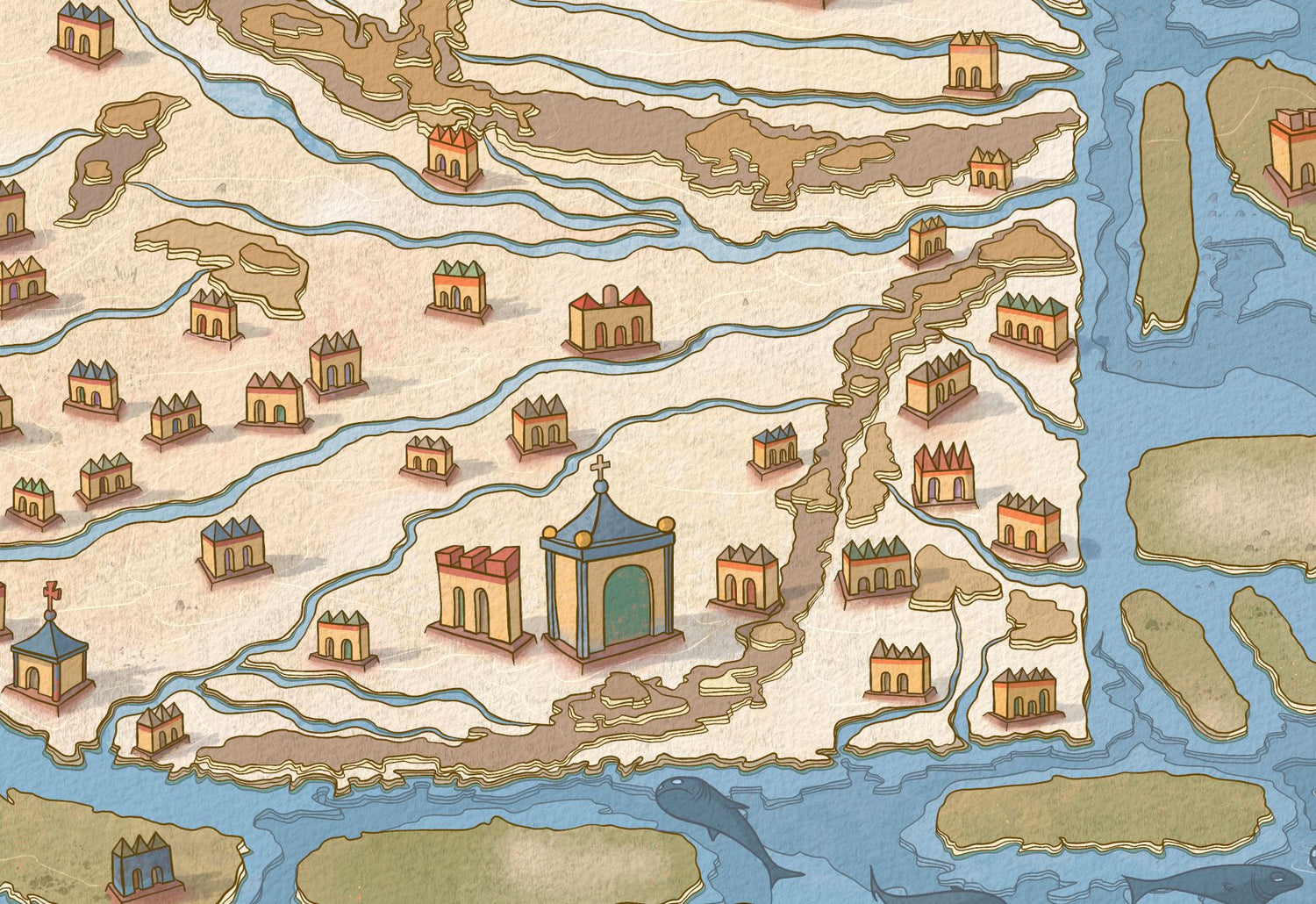 Étape cruciale, la mise en couleur révèle les formes, les objets, les espaces habités et les océans. L'étude approfondie de manuscrits très anciens me force d'ailleurs à une grande modestie : certains manuscrits, parfois de très petite taille, sont d'une clarté absolument époustouflante !