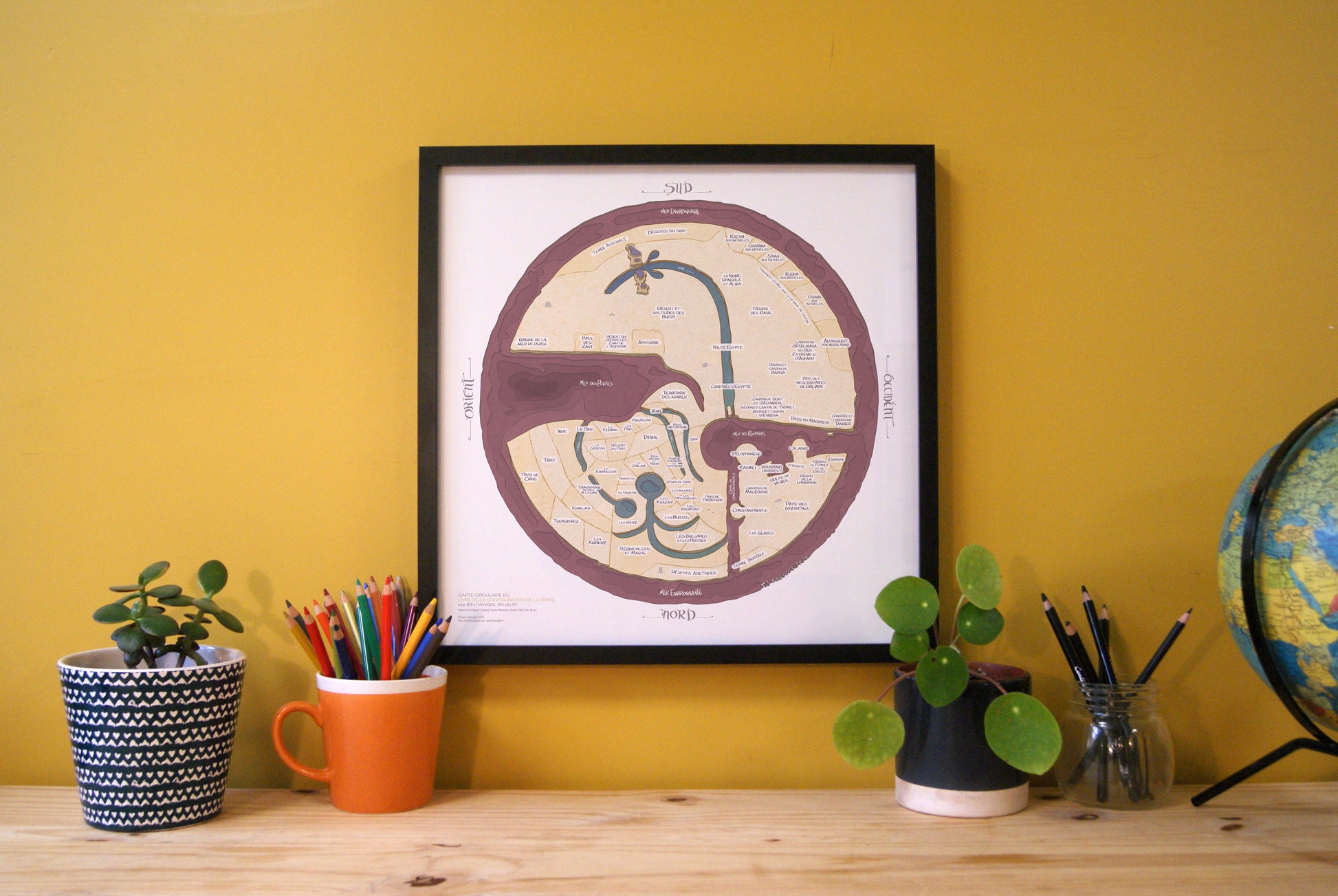 Carte circulaire du Livre de la configuration de la terre par Ibn Hawqal (Xe) - 40/40cm (3 couleurs disponibles)